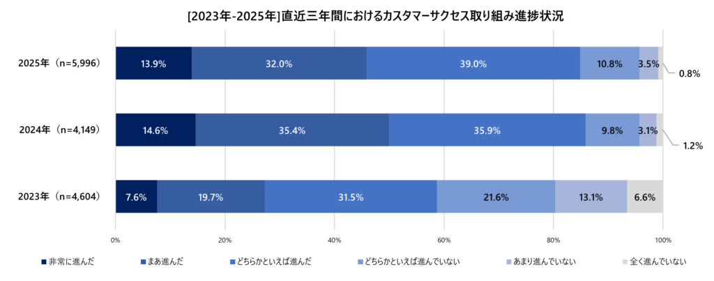 下図のように、国内調査でも「直近数年でカスタマーサクセスの取り組みが進んだ」と回答する企業が8割超にのぼり、今後も人材ニーズは継続的に拡大すると見込まれています。